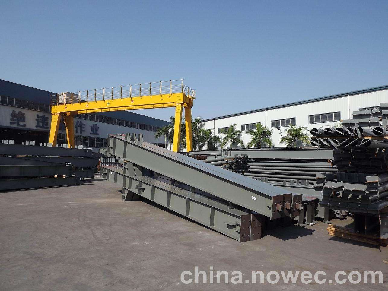 条状单元一般沿长跨方向分割,其宽度约为1~3个网格,其长度为l2或l2/2(l2为短跨跨距)。块状单元一般沿丹阳网架平面纵横向分割成矩形或正方形单元。每个单元的重量以现有起重机能胜任为准。条(块)与条(块)之间可以直接拼装,也可空一网格在高空拼装。由于条(块)状单元是在地面拼装,因而高空作业量较高空散装法大为减少,拼装支架也减少很多,又能充分利用现有起重设备,故较经济。这种安装方法适用于分割后网架的钢度和受力状况改变较小的各类中小型网架,如两向正交正放四角锥、正放抽空四角锥等网架。